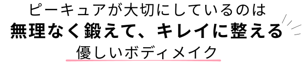 ピーキュアでは、年齢とともに増えていく体のお悩みに寄り添いながら、健康も美しさもどちらも大切にした体づくりをサポートしています。