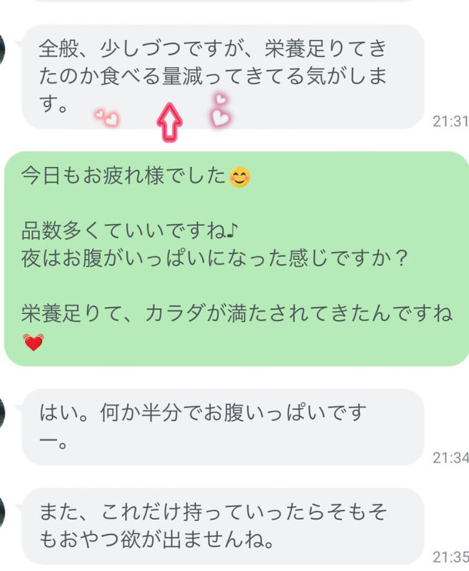 体が栄養で満足すると食べる量が減ってきます