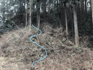 石やごみや色々な物が溜まって道かどうかわからなくなっている状態です。