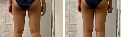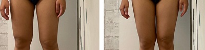 右が痩身クリームを1週間お風呂上りに塗り込んだ写真です